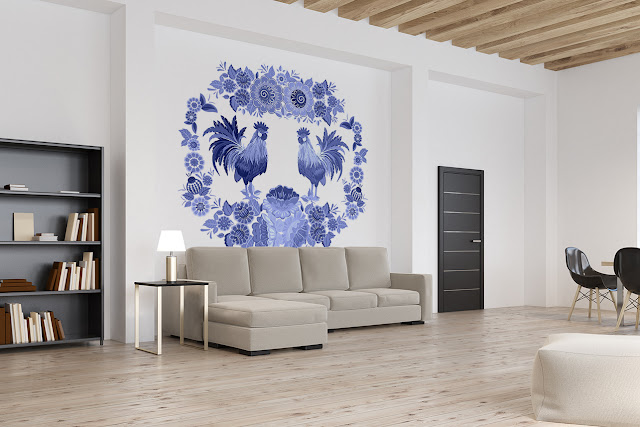 Nowoczesne trójwymiarowe wzory bazujące na złudzeniach optycznych lub przypominające kosmiczne tunele czasoprzestrzenne to sposób na spektakularną ozdobę salonu. Taki wzór stanie się dominantą aranżacji, dlatego warto po niego sięgnąć, gdy w naszym pokoju brakuje wyrazistego akcentu. Zaletą takiej dekoracji jest to, że powiększy nam także optycznie metraż. Aby spotęgować efekt warto dopasować wzór pod kątem kolorystycznym by stworzył harmonijną całość z pokojem. Na przeciwległym biegunie znajdują się z kolei naklejki inspirowane kulturą ludową. Wbrew pozorom sprawdzą się nie tylko w klasycznym wnętrzu – ożywią także nowoczesną, stonowaną przestrzeń. Kolorowe kwiaty o uproszczonej formie, zabawne koguciki i ornamenty przywodzące na myśl kurpiowskie wycinanki z papieru będą niezwykle barwnym akcentem, dzięki któremu wystrój nabierze rumieńców!